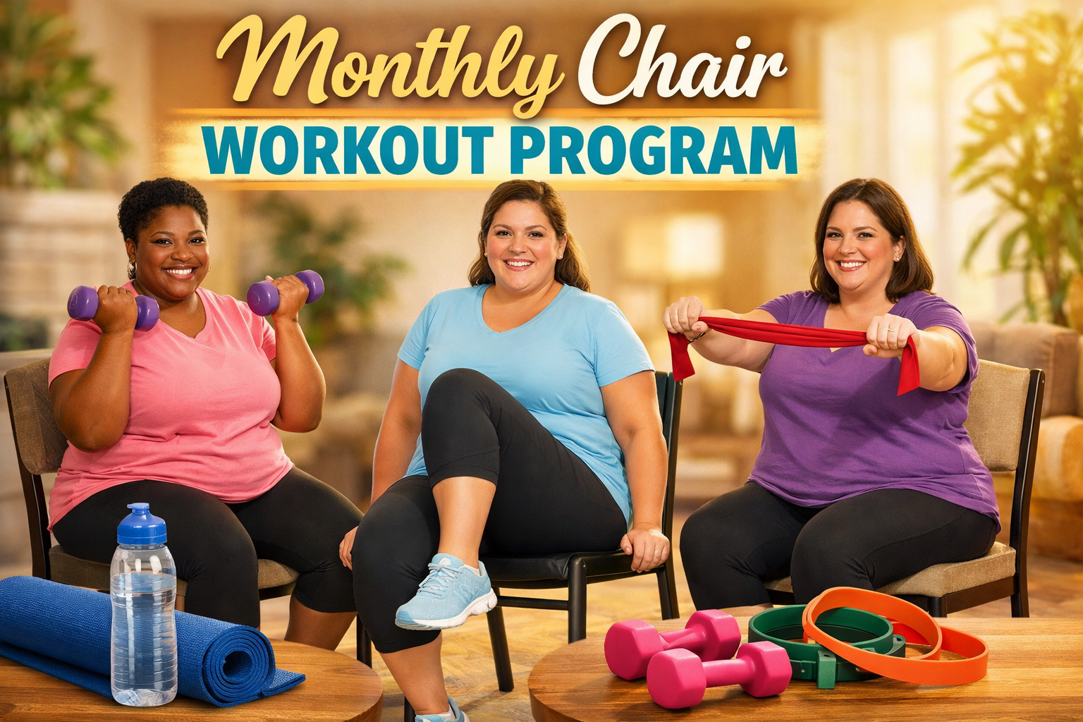 The Monthly Chair Workout program focuses on chair-only, joint-friendly movement.
